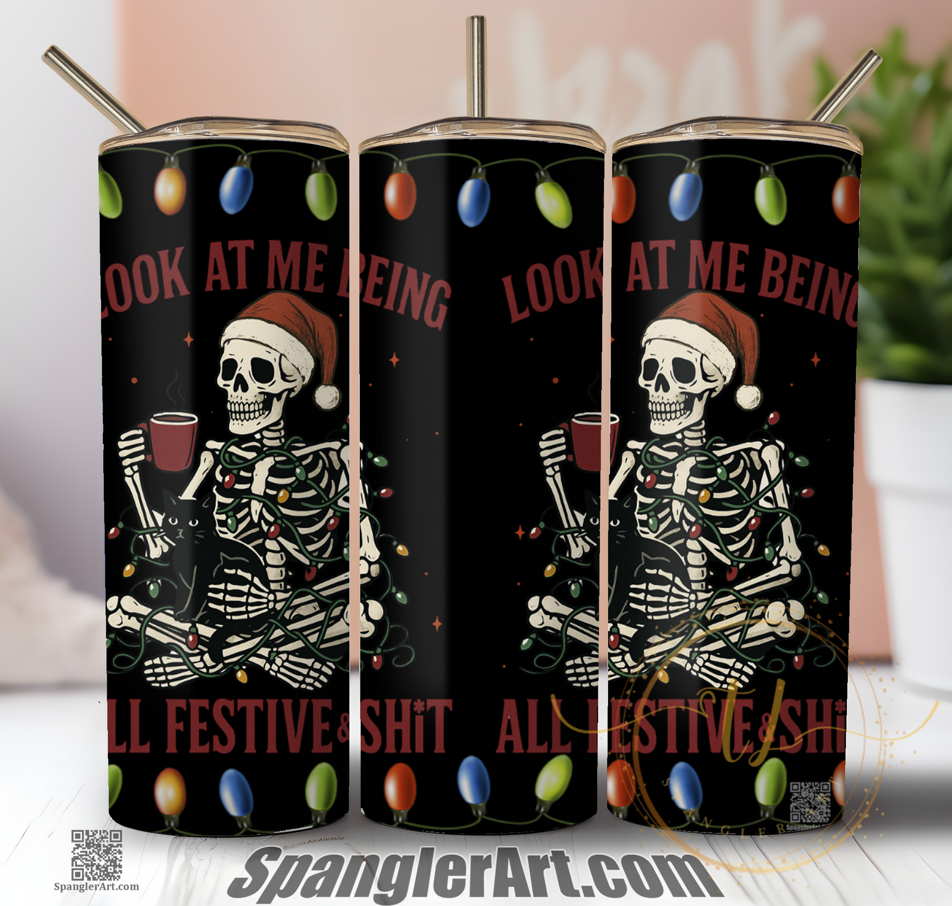 Get into the holiday spirit with the Being All Festive and Shit Tumbler! Perfect for sipping your favorite drink while embracing your skeletal festive vibe, this tumbler keeps beverages just right and adds a splash of fun to every celebration. Whether at a party or cozy by the fire, it’s your go-to festive companion.