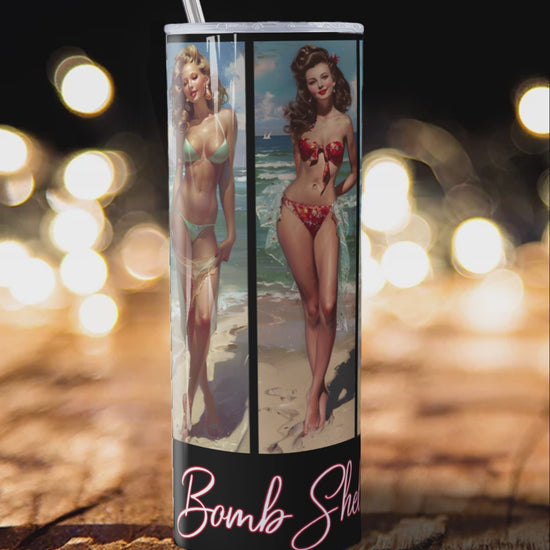 Sip in style with this retro-inspired tumbler featuring classic pin-up artwork that brings vintage glamour to your daily routine. The bold, eye-catching designs celebrate timeless beauty with a cheeky wink. Perfect for coffee, cocktails, or whatever you're in the mood for, this tumbler keeps your drinks at the ideal temperature while turning heads. A fun conversation starter that adds personality to any collection.