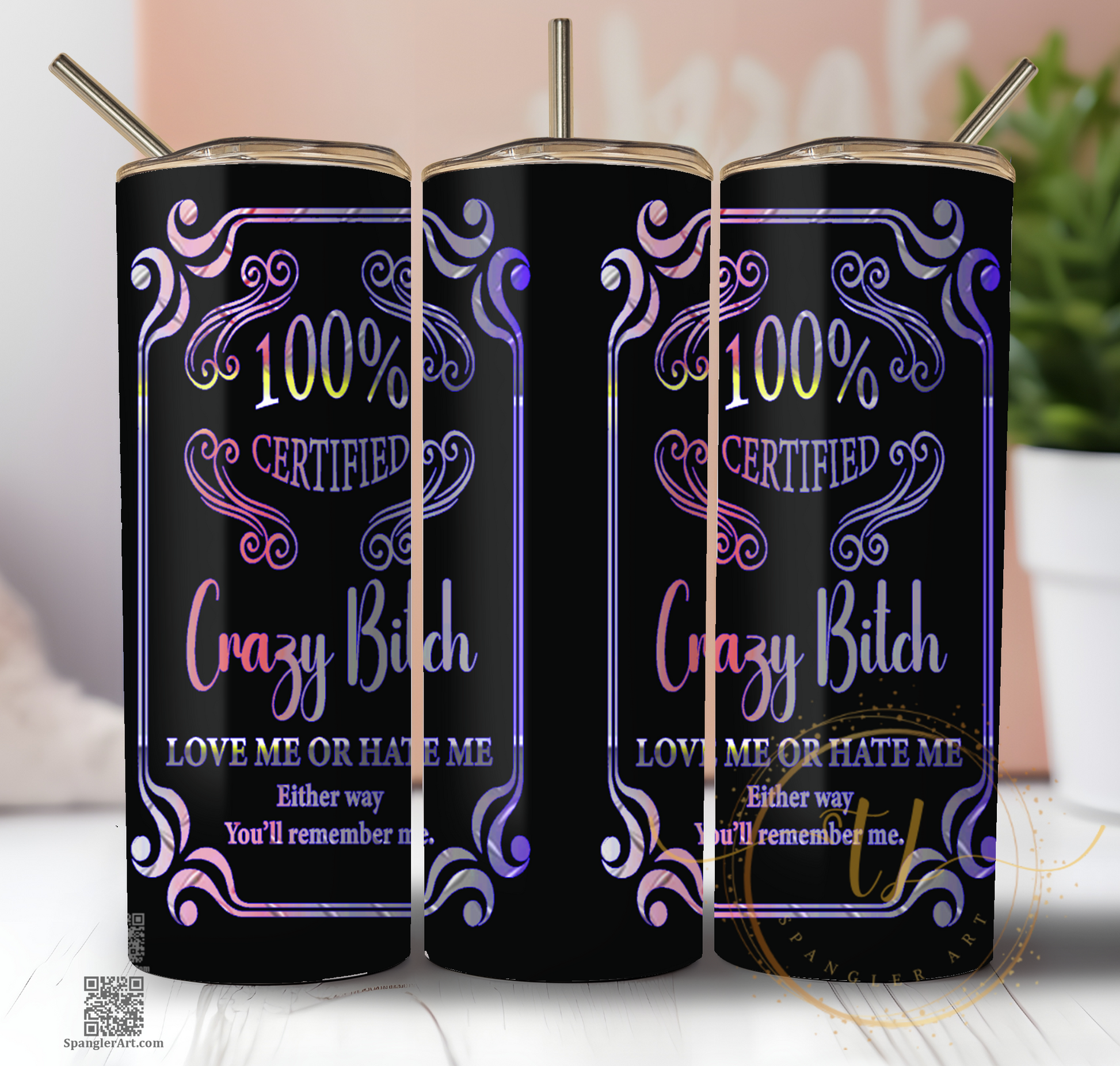 Embrace your wild side with our "Crazy Bitch!" tumbler! This sassy drinkware makes no apologies for being bold and unapologetic. Perfect for those moments when you need to sip and smirk simultaneously. Keep your drinks cold (or hot) while letting everyone know exactly what kind of mood you're in today!