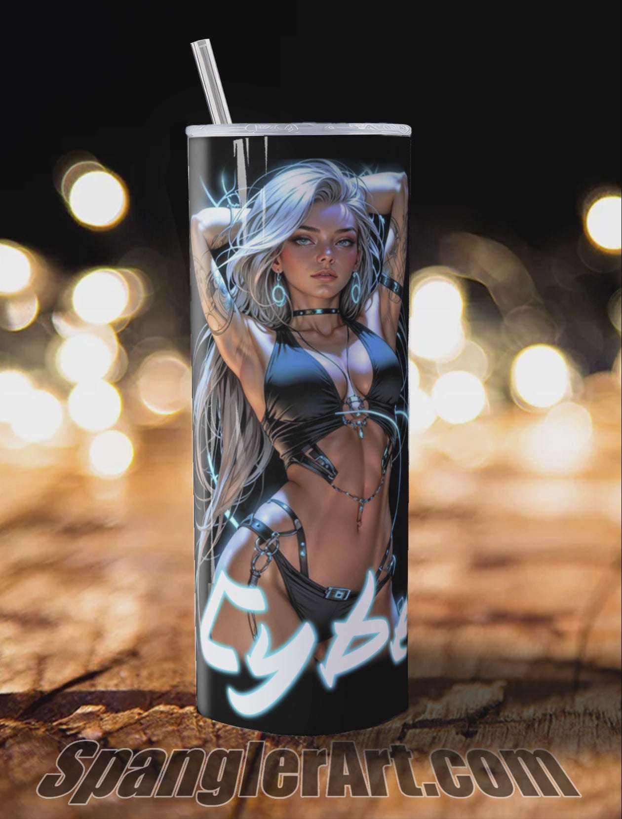 Introducing the Sexy Cyberpunk Tumbler! Stay cool and stylish with this sleek and futuristic tumbler. Perfect for hot or cold drinks on the go. Embrace your inner cyberpunk while keeping your beverage at the perfect temperature. Who says tech can't be sexy?!